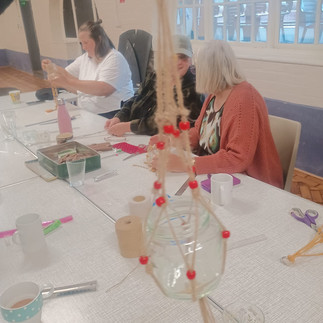 The workshop at Moorpool Hall buzzed with creativity as attendees dived into the world of macrame. Laughter and camaraderie filled the air as we bonded over our shared love for crafting. With cords in hand and imaginations running wild, we embarked on our creative journey, weaving intricate patterns to form beautiful macrame candle holders.